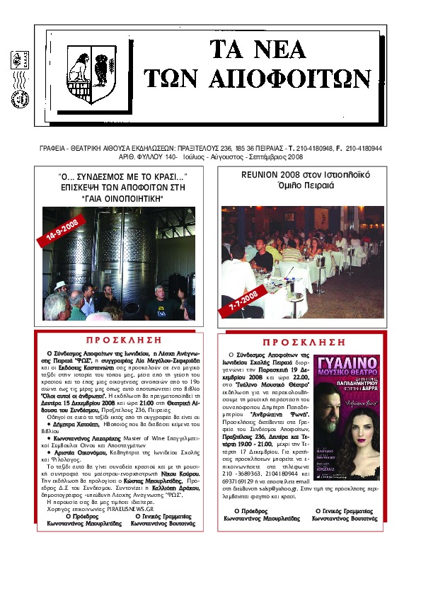 Εφημερίδα 140 (Ιούλιος - Σεπτέμβριος), 2008